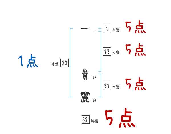 天運![]() | 一貴麗さんの天運は1画の5つ星!行動力、指導力があり出世し繁栄する。幸運に恵まれる。 家系が持つ宿命的な運勢を表します。祖先から受け継いだ苗字ですので自分の力が及びません。家柄を象徴します。 |