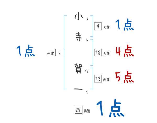 小寺賀一さんの画数の鑑定結果