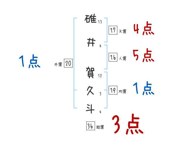 天運![]() | 碓井賀久斗さんの天運は17画の4つ星!積極的な行動力。地位を気づき財産を手に入れる。純粋な心と直感力。 家系が持つ宿命的な運勢を表します。祖先から受け継いだ苗字ですので自分の力が及びません。家柄を象徴します。 |