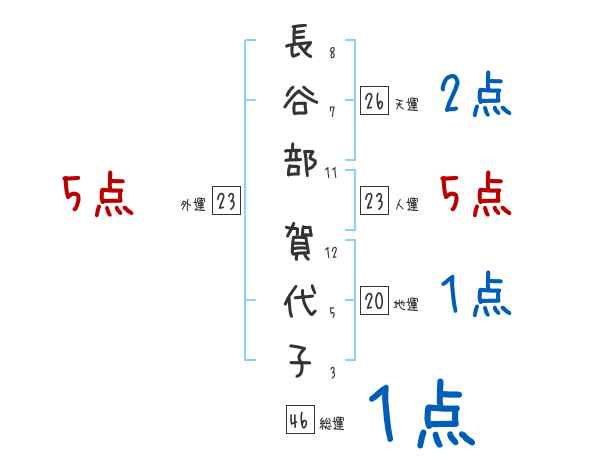長谷部賀代子さんの画数の鑑定結果