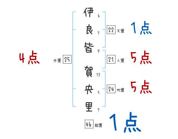 伊良皆賀央里さんの画数の鑑定結果
