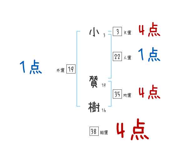 小賛樹さんの画数の鑑定結果