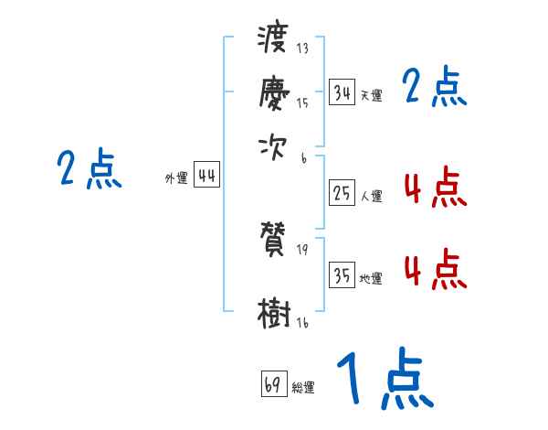 家系が持つ宿命的な運勢を表します。祖先から受け継いだ苗字ですので自分の力が及びません。家柄を象徴します。