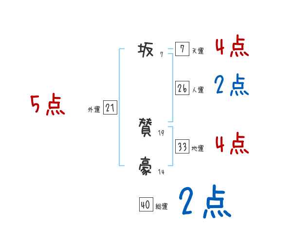 坂賛豪さんの画数の鑑定結果