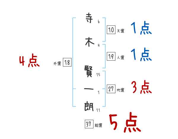 寺木賢一朗さんの画数の鑑定結果