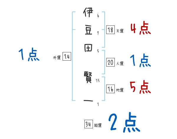 総運![]() | 伊豆田賢一さんの総運は34画の2つ星!独創性に優れるが、自尊心が強く災難に注意しましょう。 あなたの人生を表す1番重要な運勢です。生涯を通じて影響する総合運となり、主に50歳以降の晩年期に影響を及ぼします。 |