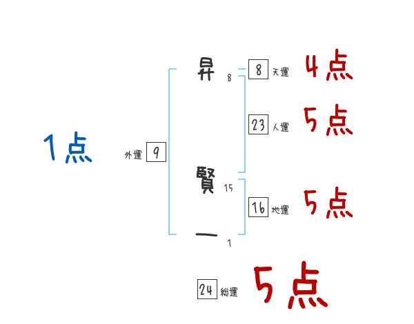 昇賢一さんの画数の鑑定結果