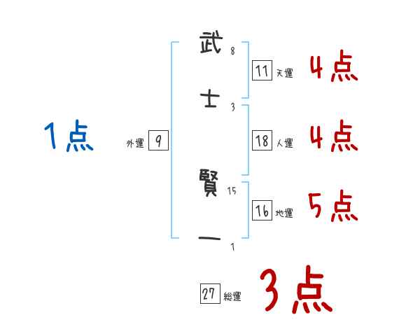 外運![]() | 武士賢一さんの外運は9画の1つ星!消極的で才能を発揮することが苦手なことも。周りの意見に耳を傾けましょう。 生活面を象徴する運勢です。外部から受ける影響力を表し、結婚運、家庭運や職場、環境への順応性を表します。 |
