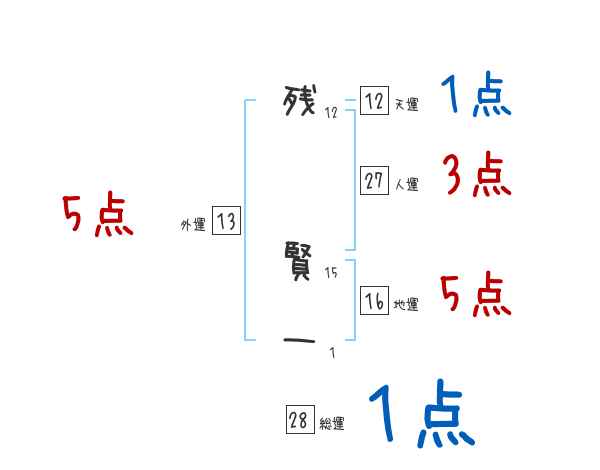 残賢一さんの画数の鑑定結果