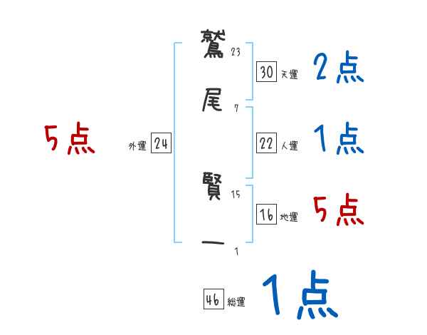 鷲尾賢一さんの画数の鑑定結果