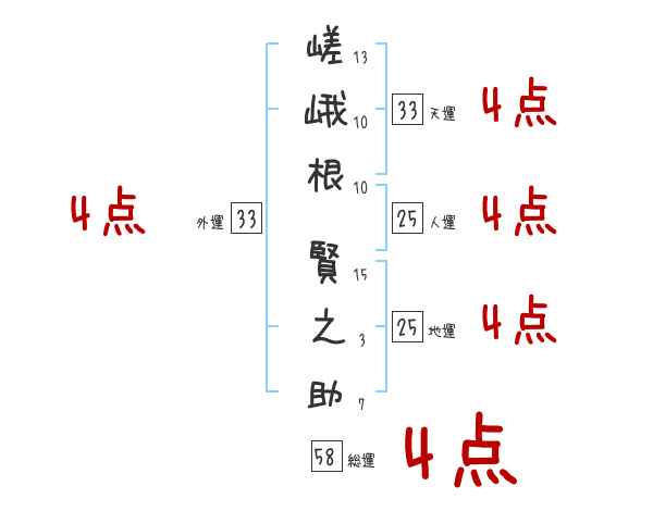 嵯峨根賢之助さんの画数の鑑定結果