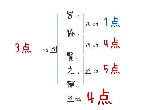 宮脇賢之輔さんの画数の鑑定結果