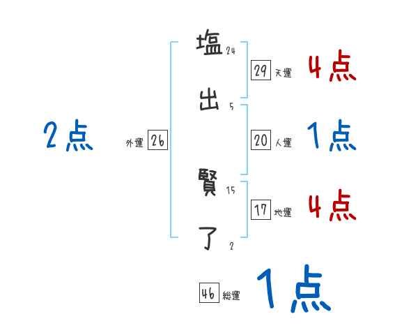 塩出賢了さんの画数の鑑定結果