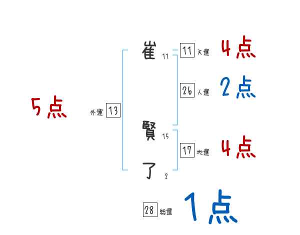 崔賢了さんの画数の鑑定結果