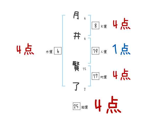 月井賢了さんの画数の鑑定結果