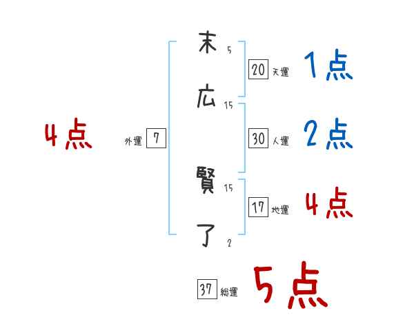 外運![]() | 末広賢了さんの外運は7画の4つ星!強い意志や信念を持ち独立心が強い。自立する。 生活面を象徴する運勢です。外部から受ける影響力を表し、結婚運、家庭運や職場、環境への順応性を表します。 |