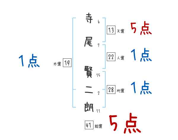 寺尾賢二朗さんの画数の鑑定結果