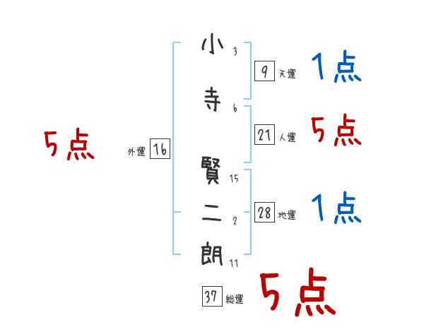 小寺賢二朗さんの画数の鑑定結果