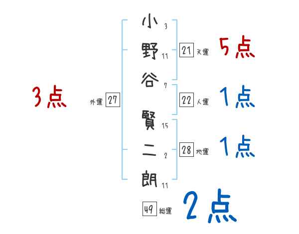 小野谷賢二朗さんの画数の鑑定結果