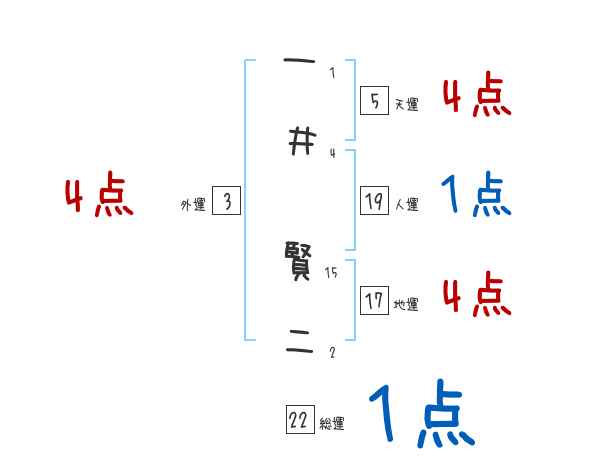 人運![]() | 一井賢二さんの人運は19画の1つ星!優れた才能を持ちますが、協調性が足りないことも。周りの人と協力する事を意識しましょう。 性格や才能などを表す2番目に重要な運勢です。人間関係や協調性、社会的な成功に影響します。主に20歳から50歳ぐらいまでの中年期の運勢を表します。 |