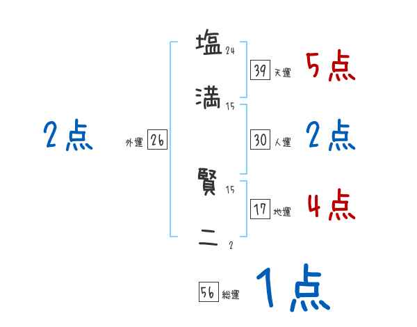 塩満賢二さんの画数の鑑定結果