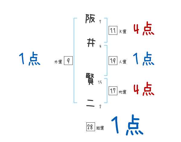 阪井賢二さんの画数の鑑定結果