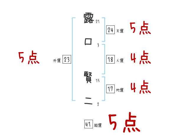 露口賢二さんの画数の鑑定結果