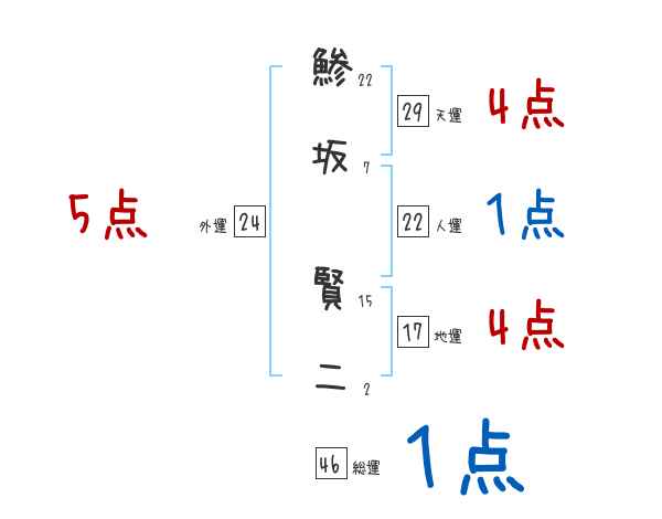 鯵坂賢二さんの画数の鑑定結果