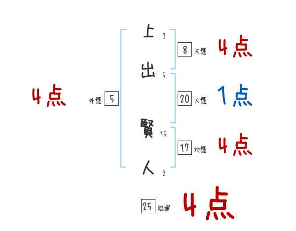 上出賢人さんの画数の鑑定結果