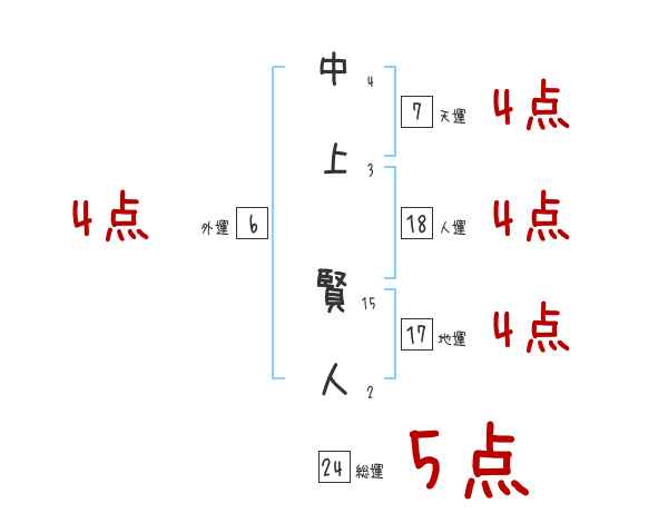 中上賢人さんの画数の鑑定結果