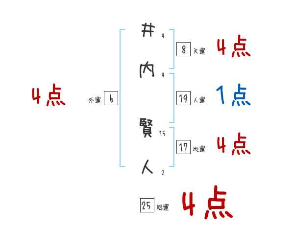 井内賢人さんの画数の鑑定結果