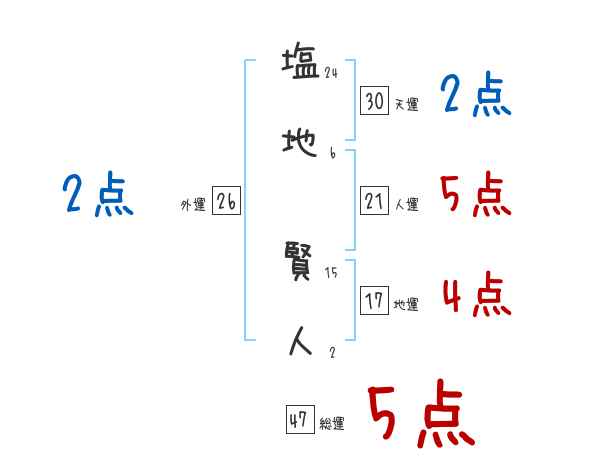 外運![]() | 塩地賢人さんの外運は26画の2つ星!波瀾万丈かも。信頼できる人を大事にしましょう。 生活面を象徴する運勢です。外部から受ける影響力を表し、結婚運、家庭運や職場、環境への順応性を表します。 |