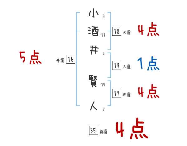 小酒井賢人さんの画数の鑑定結果