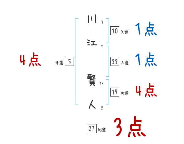 川江賢人さんの画数の鑑定結果