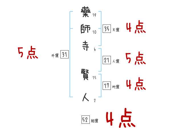 藥師寺賢人さんの画数の鑑定結果