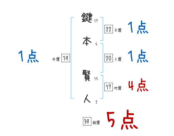 鍵本賢人さんの画数の鑑定結果