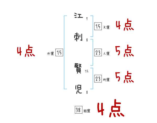 江刺賢児さんの画数の鑑定結果