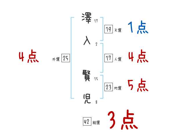 澤入賢児さんの画数の鑑定結果