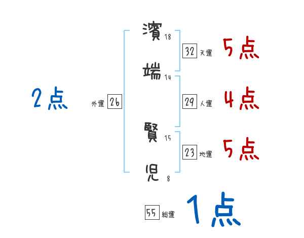 濱端賢児さんの画数の鑑定結果
