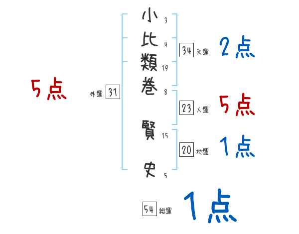 人運![]() | 小比類巻賢史さんの人運は23画の5つ星!想像力に優れ活力がある。一代で成功し名誉を手に入れる。 性格や才能などを表す2番目に重要な運勢です。人間関係や協調性、社会的な成功に影響します。主に20歳から50歳ぐらいまでの中年期の運勢を表します。 |