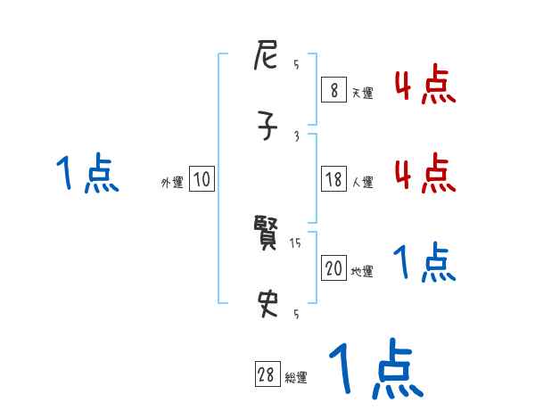 尼子賢史さんの画数の鑑定結果