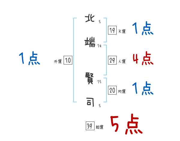 北端賢司さんの画数の鑑定結果