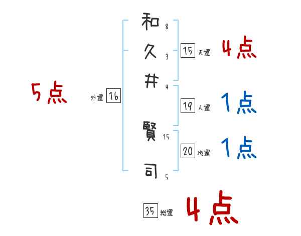 和久井賢司さんの画数の鑑定結果