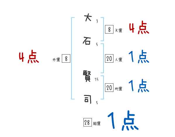 大石賢司さんの画数の鑑定結果