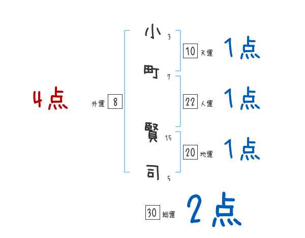 小町賢司さんの画数の鑑定結果