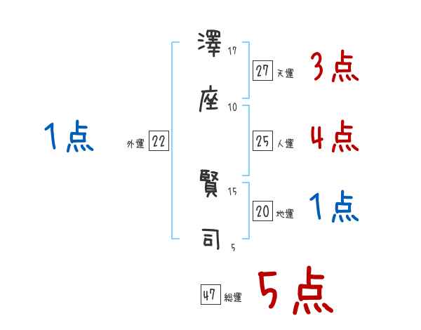 澤座賢司さんの画数の鑑定結果