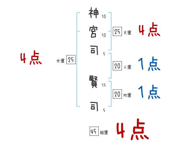 天運![]() | 神宮司賢司さんの天運は25画の4つ星!個性があり才能があふれる。強運の持ち主で発展する。 家系が持つ宿命的な運勢を表します。祖先から受け継いだ苗字ですので自分の力が及びません。家柄を象徴します。 |