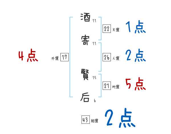 家系が持つ宿命的な運勢を表します。祖先から受け継いだ苗字ですので自分の力が及びません。家柄を象徴します。