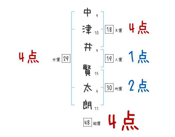 中津井賢太朗さんの画数の鑑定結果