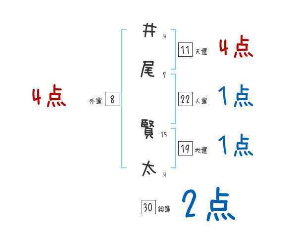 井尾賢太さんの画数の鑑定結果